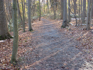 And so our walk ends with a very brisk walk home as the sunlight is failing and the temps are falling. Note the edges of the trail...snow covered!! I love snow!